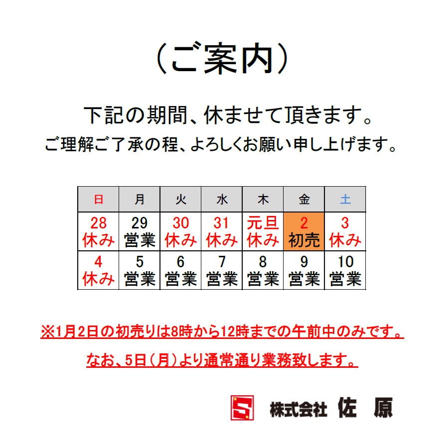 2025年度年末年始の休業についてお知らせ
